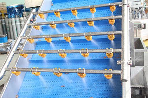 鼓泡清洗機(jī)基礎(chǔ)款適用于外形不復(fù)雜,污垢單一(如含泥沙為主)的產(chǎn)品。它由鼓泡發(fā)生裝置和噴淋裝置組成,物料投入箱體后在氣泡機(jī)和水的結(jié)合作用下做翻滾狀態(tài),并隨網(wǎng)帶不斷向前推進(jìn),在出水面處設(shè)有噴淋頭,高壓沖洗。