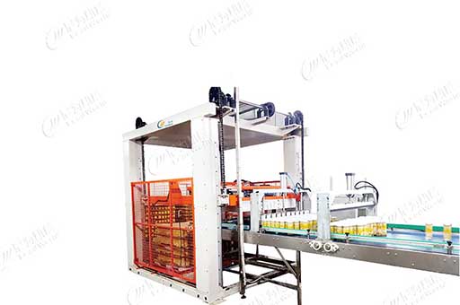 1.實罐碼垛機:適用于實罐或空罐馬口鐵罐、玻璃瓶。設備主要由實罐輸送系統、 實罐碼垛系統組成。工作方式采用磁力吸取移載型,不傷罐、不擦罐、不掉罐。這類設備簡單、可靠、靈活性高且體積小。生產速度大概為400罐/分,運行穩定可靠。