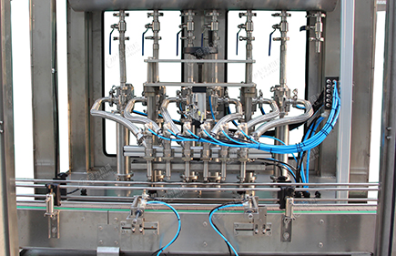 冷卻后的番茄醬就可以灌裝了,利用濃醬灌裝機灌進廠家想要的容器內。灌裝機的類型很多,像番茄醬、果醬這種醬類,可以采用尼為的全自動濃醬灌裝機,灌裝頭使用了防滴漏和拉絲的設計,灌裝定位精準,計量準確,物料不會噴出。灌裝頭的數量與灌裝速度、容量等皆可根據廠家的產量定制。