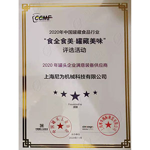 恭喜尼為榮獲“2020年罐頭企業滿意設備工藝商