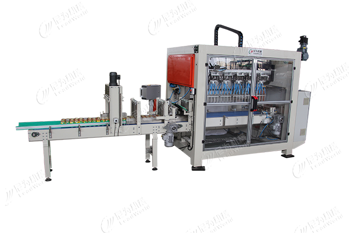 裝箱機的工作原理 根據用戶要求,將產品整理排列,設計新型、結構緊湊、適用于將PET瓶、塑料瓶、兩片罐或三片罐自動裝進紙箱內,適用于罐頭、飲料、食品、化工、等行業的裝箱工序。 ...