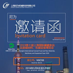 尼為機械誠邀您蒞臨2019第十屆上海國際罐藏食品及原輔材料、機械設備博覽會